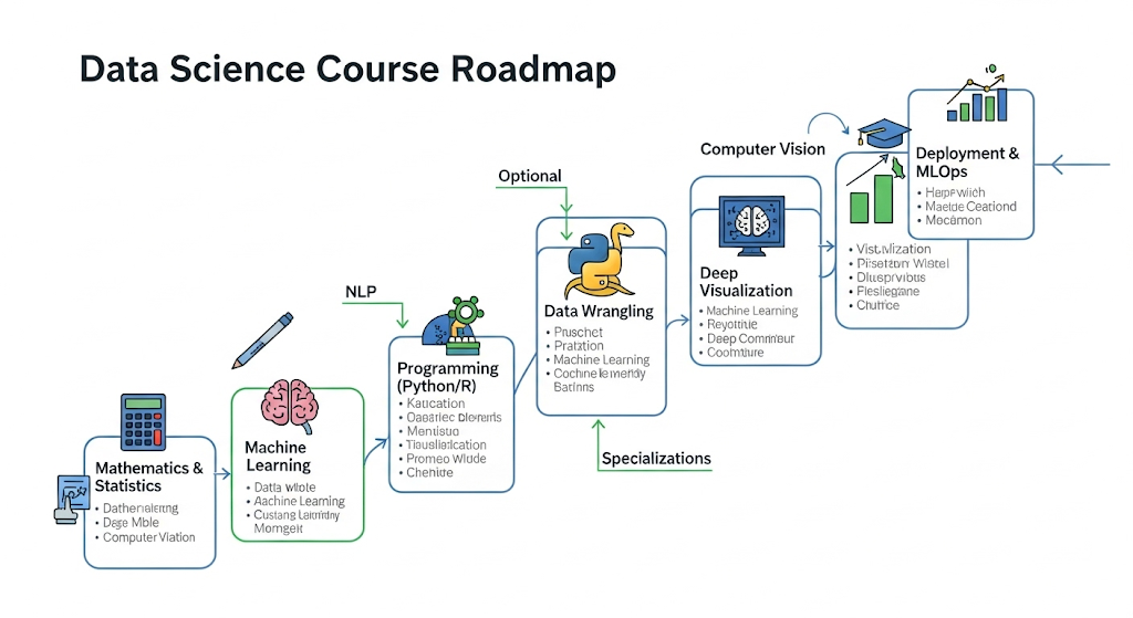 This comprehensive Data Science course provides practical training on data handling, statistical analysis, machine learning, and AI techniques to help you become a data-driven professional. You’ll start with Python programming for data manipulation, learn core statistics for analysis, and explore advanced machine learning algorithms.
